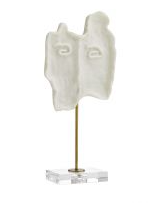 INSPIRED BY THE ABSTRACT FACES THAT DEFINED PICASSO'S ARTISTIC CAREER THESE SCULPTURES ARE JUST AS ARTISTICALLY DARING AND DEFIANT. WHITE RICESTONE IS EXTRAORDINARILY CARVED LEAVING THE ONLOOKER AWE-STRUCK EACH TIME THEY ARE ADMIRED. A THIN ANTIQUE BRASS PILLAR EXTENDS FROM A LUXE CLEAR CRYSTAL BASE TO SHOWCASE THIS STRIKING SET. A TRUE WORK OF ART FOR ANY STYLE SPACE.